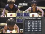 Similar to the Kinniku Banzuke version, competitors would have to do as many push-ups as possible within three minutes with a difference being in a group of four instead of pairs. After the event, two competitors with the least amount of points is eliminated from the Survival Battle.