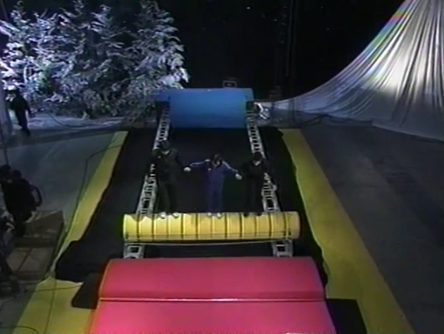 Amazon (アマゾン) was an obstacle that made up the Brazil Stage (5th Stage) in VIKING Family Muscle. This obstacle functioned similarly to SASUKE's Balance Tank and KUNOICHI's Enchu Nori, except it must be attempted with a group of 3 competitors rolling on the cylinder at the same time. If any competitor falls, the entire team is eliminated. One difference from similar obstacles is that the barrel does not reach the end of the track, forcing a dismount.