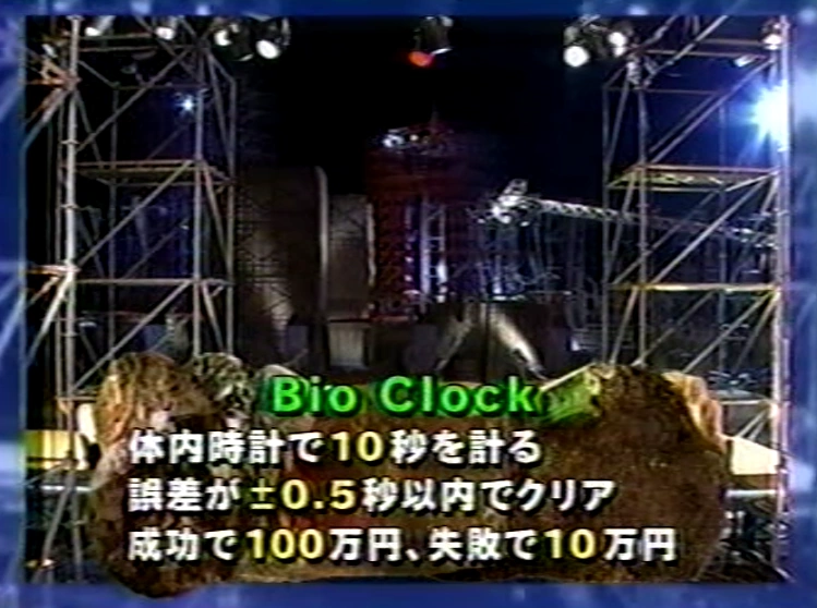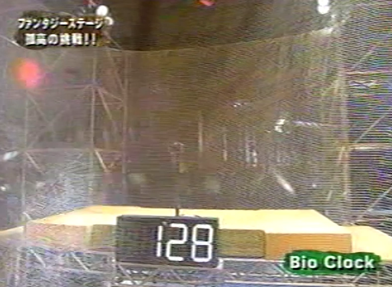 Bio Clock (バイオクロック), stylized Bio Clock in broadcast, was an obstacle which originally appeared in VIKING 1's Third Fantasy Stage as the final obstacle, however, due to the difficulty of the previous stage, it wasn't attempted until VIKING 2. In VIKING 3, due to Third Fantasy Stage being deleted altogether, this obstacle would never appeared again.