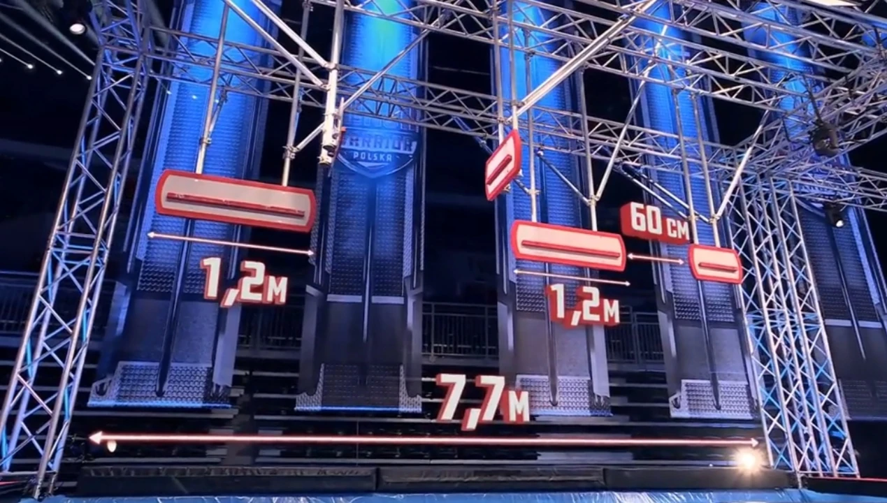 - From there, competitors had to overcome a 90-centimeter (3-foot) horizontal gap and transfer to the fourth ledge, which is 1.2 metres (3.94 feet) long, and traverse it to their right.