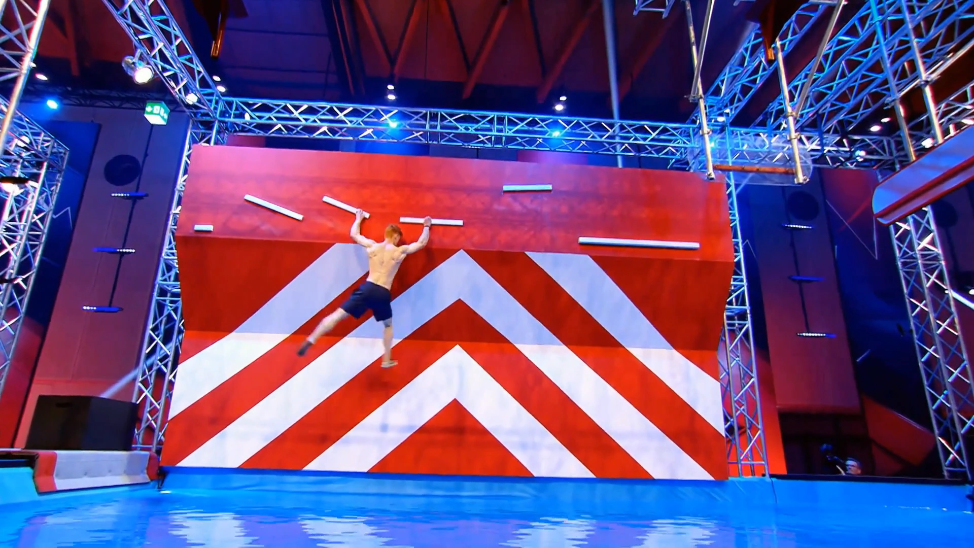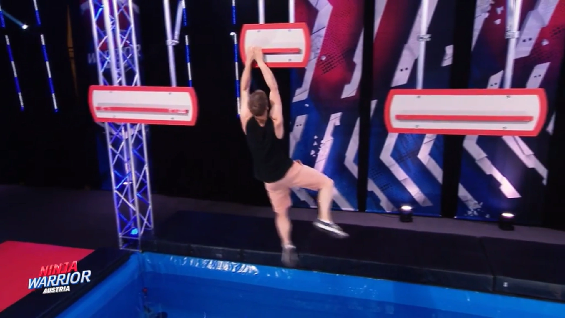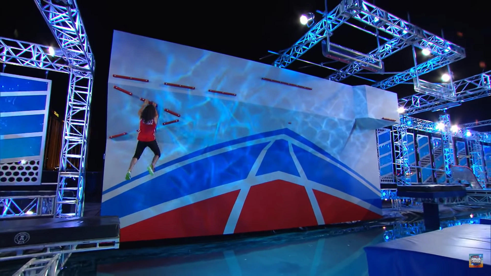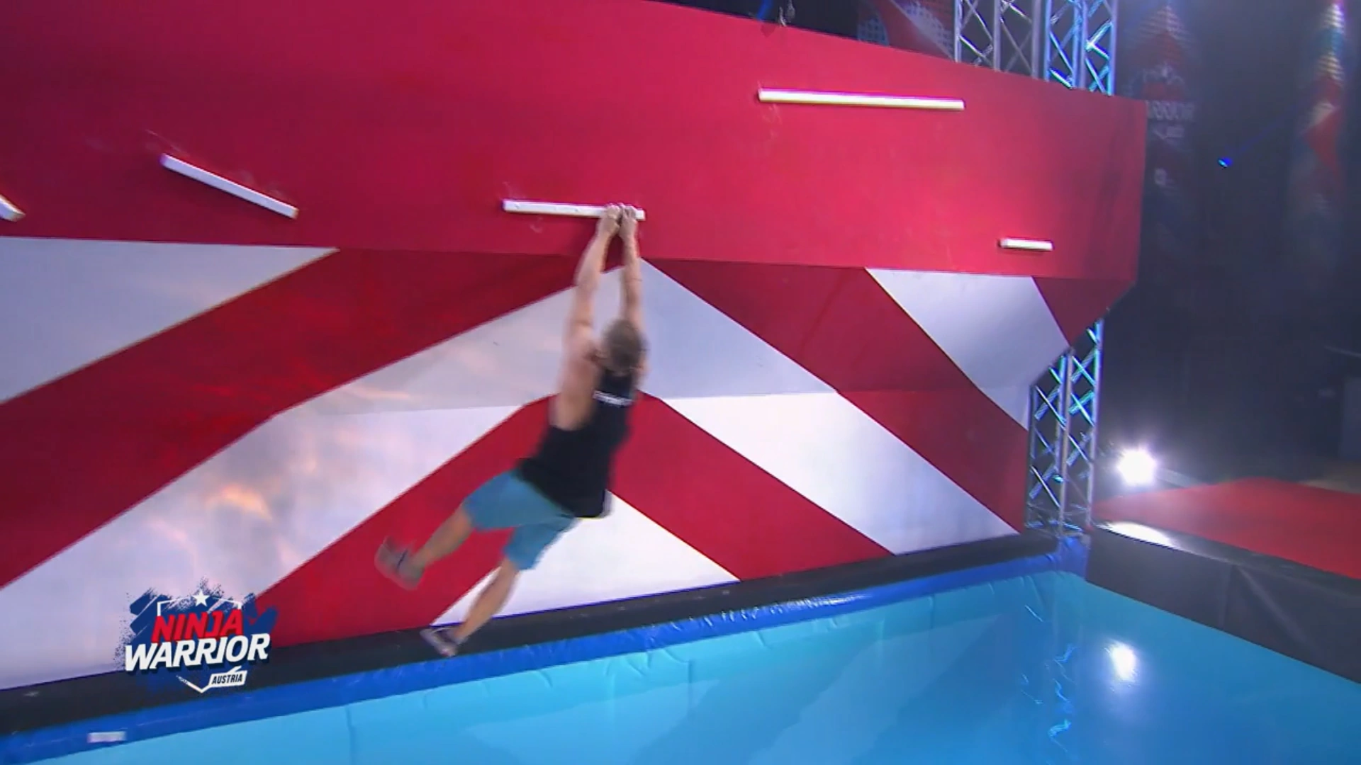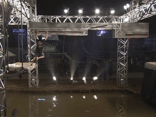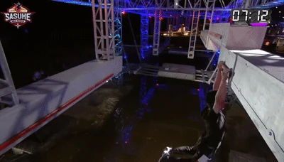 Unfortunately, no one managed to clear it in the next tournament, as Drew Drechsel, the only competitor to attempt it in that tournament, performed the transition to the moving ledge one second too late (with the moving ledge starting to move up as he tried to make the transition), thus falling to the water. The number of attempts during the first two tournaments were also noticeably lesser than the previous versions due to the lethality of Flying Bar in the first half of Third Stage.