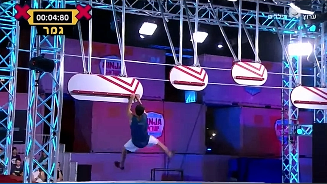 Ninja Israel 2's Swinging Cliffhanger to Sideway Hang Climbing in Stage One