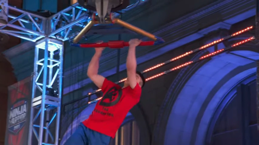 - First, they must use a springboard to reach the first bar and rotate it in a counter-clockwise direction. Once the bar drops, competitors must transition to the circular shelf portion, generate momentum, and lache to the second bar.