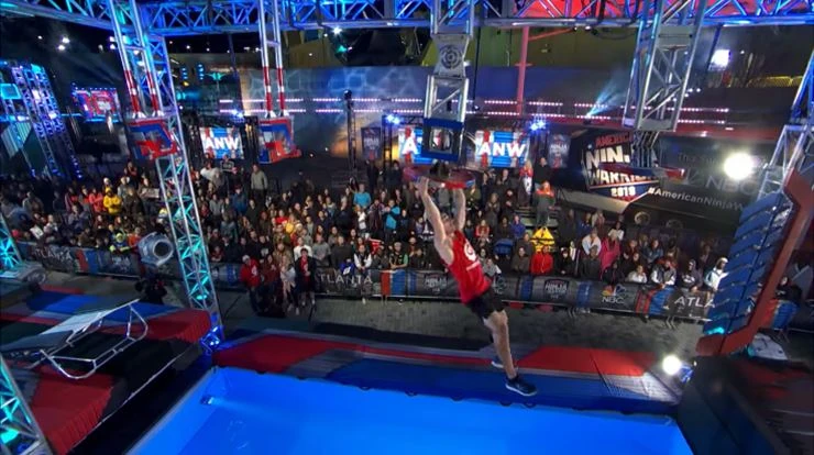 - Competitors must make the transition from the first small odd-shaped ledge to the first spinning circle, then built enough swing and momentum to make the transition to the second small odd-shaped ledge, then built enough swing and momentum to make the transition to the second spinning circle, and finally built enough swing and momentum to reach the landing platform.