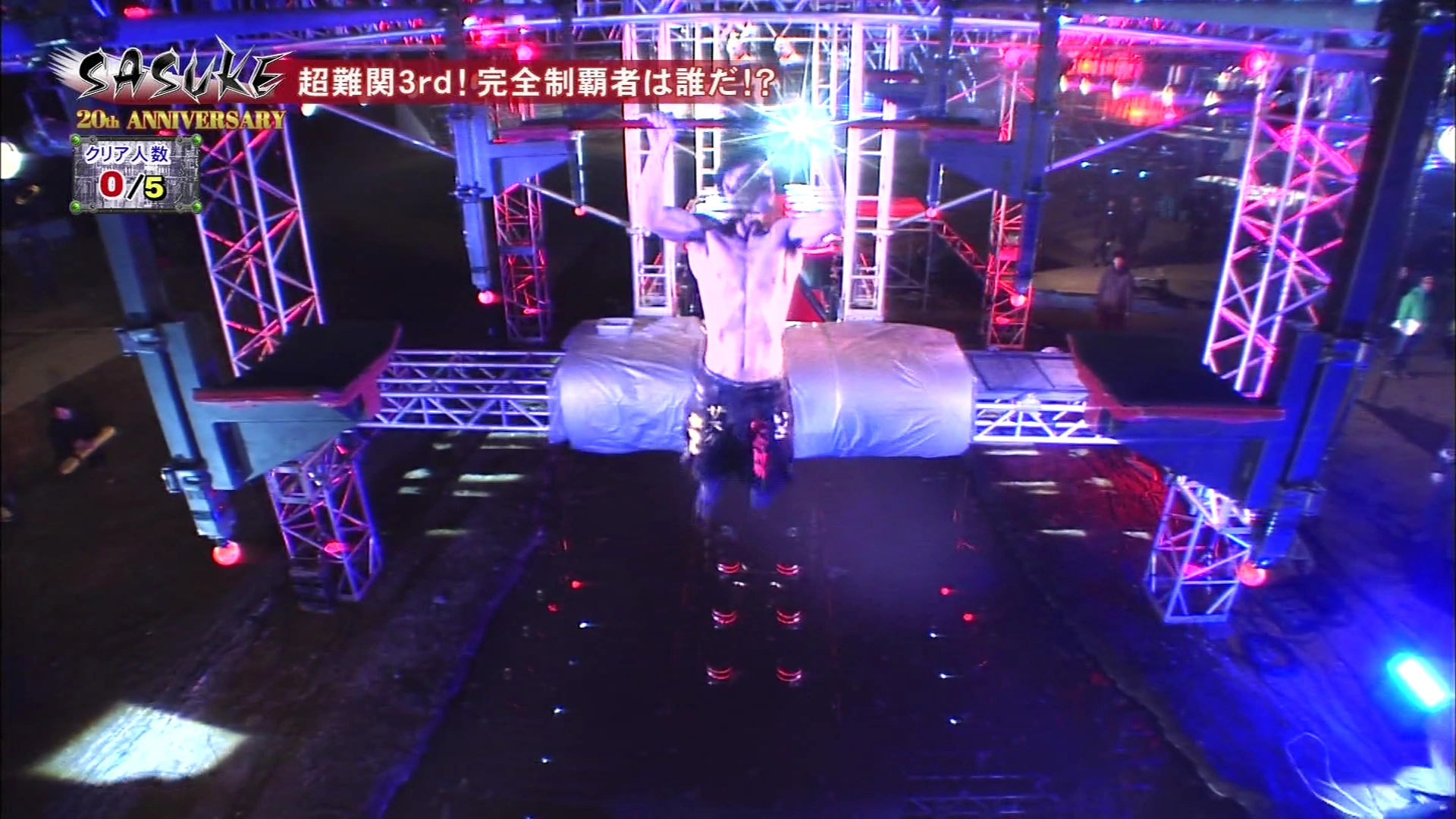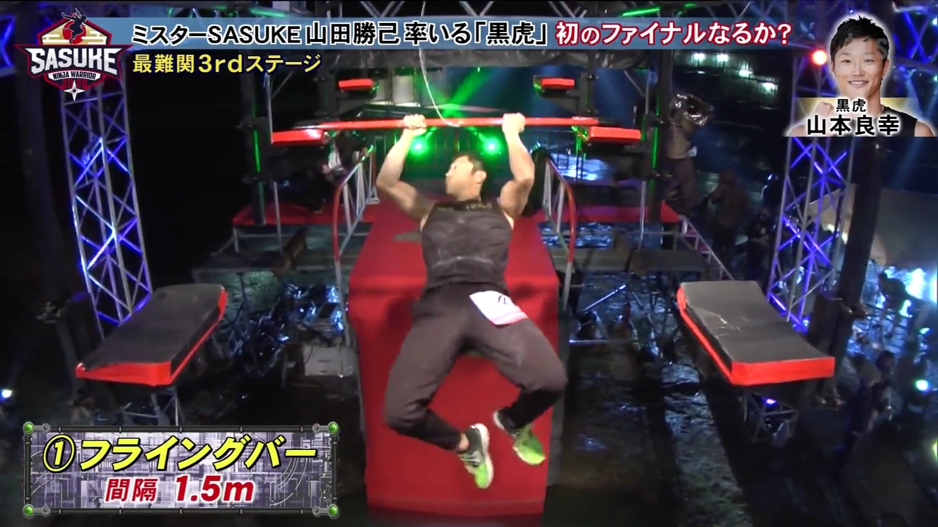 Flying Bar being tested in SASUKE 25's opening.