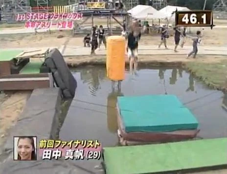 The Hasso Tobi (八艘跳) is a First Stage obstacle introduced in KUNOICHI 3. The obstacle was a replacement for the Sanrentobi and ended up being more of a threat than its successor; however, this was largely due to the fact more people attempted the obstacle. The obstacle appeared from KUNOICHI 3 to KUNOICHI 7, except for KUNOICHI 6 which the course was revised for the international competitors.