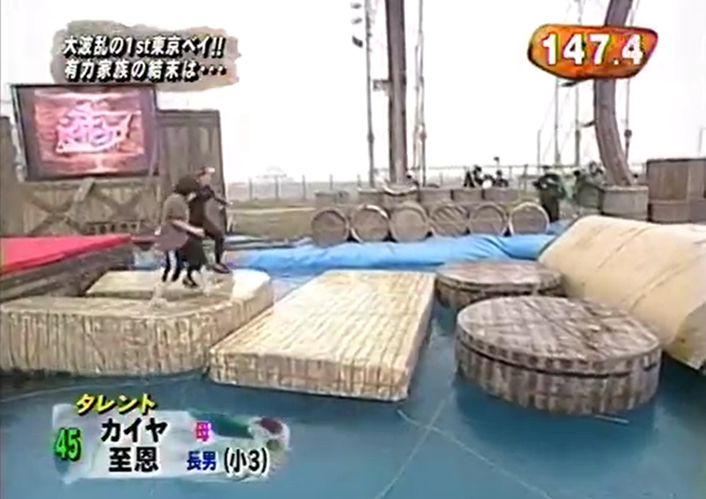 The Rendezvous Run (ランデブーラン) was an obstacle introduced in the first Pair VIKING tournament and appeared in all Pair VIKING tournaments as the first obstacle on the First Marine Stage. The obstacle consisted of a series of floating platforms that each groups have to traverse to the other side. The obstacle was pretty easy and straightforward for most of the groups, with the exception for some groups that slipped on the platform due to poor footwork and bad weather. The obstacle has a similar concept to the Suimen Dash from SASUKE Junior.