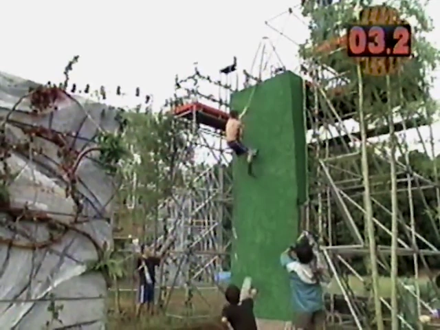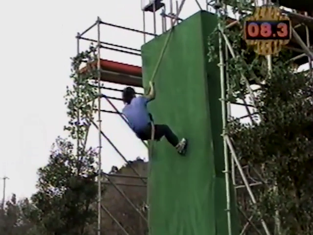 All of these modifications meant that competitors had to swing from the stationary bar to the wall (often aiming for the foothold), climb the rope until they reached the upper part of the wall, which they would hop over and hit the buzzer. There were several ways in which competitors could reduce the time spent on the obstacle: