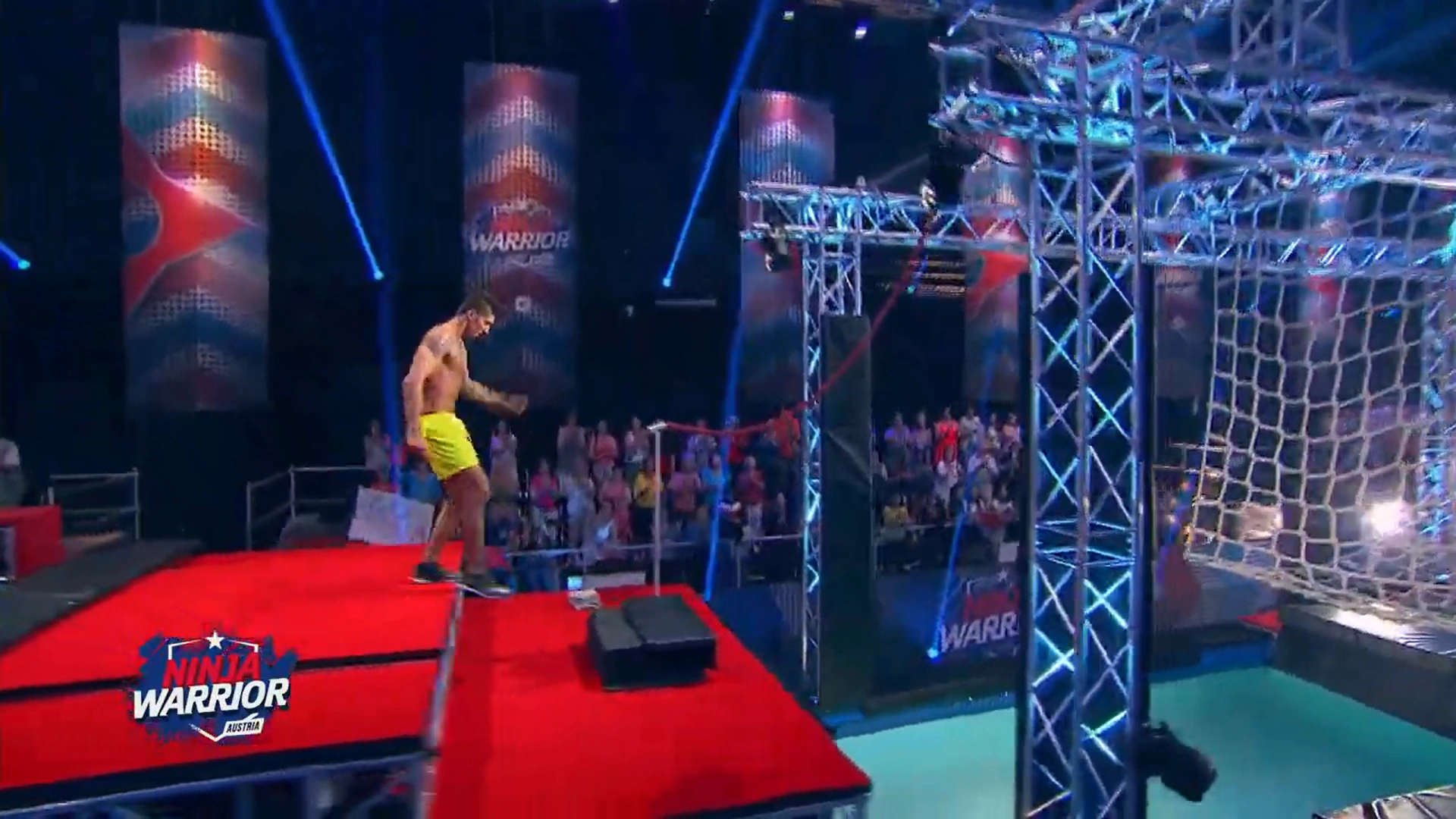 Ninja Warrior Austria 1's Rope Swing Into Cargo Net