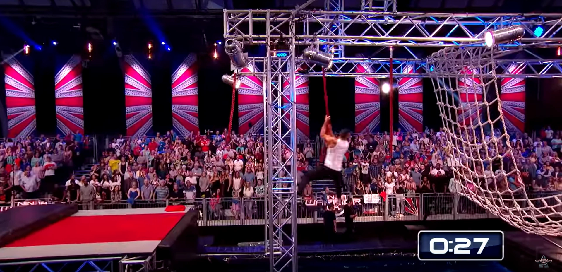 Ninja Warrior France 1's Rope Swing Into Cargo Net