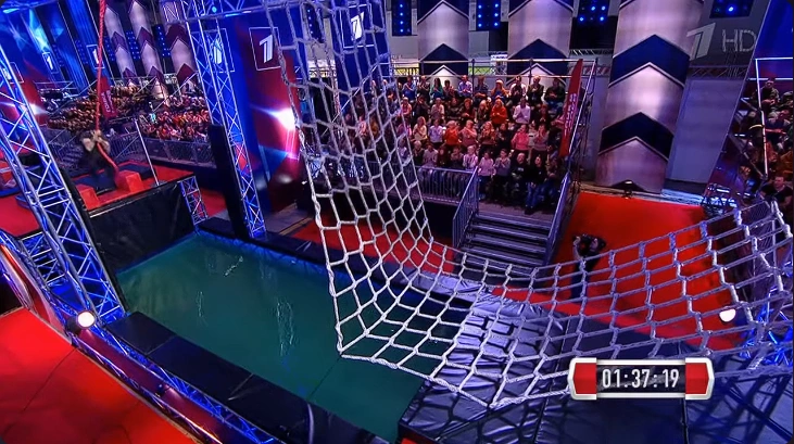 Ninja Warrior Russia's Rope Swing into Cargo Net