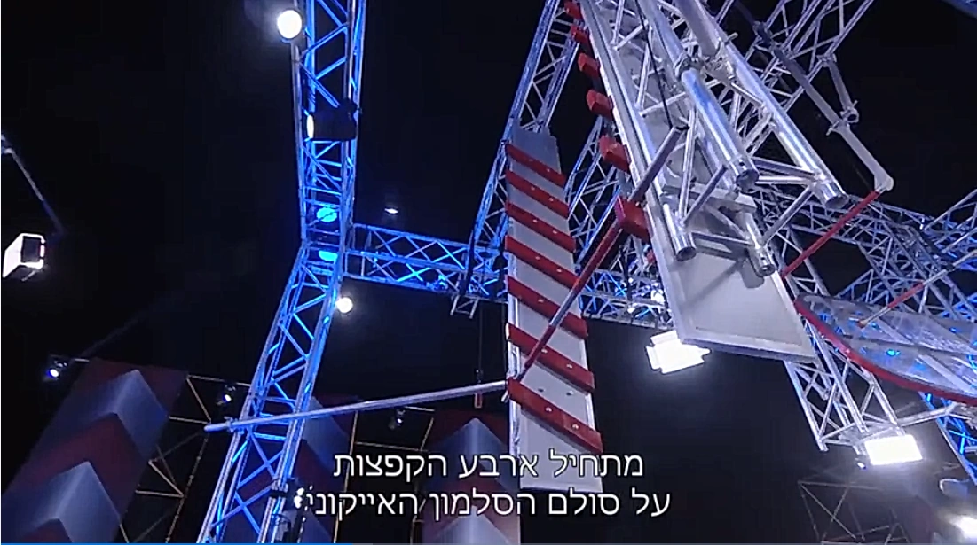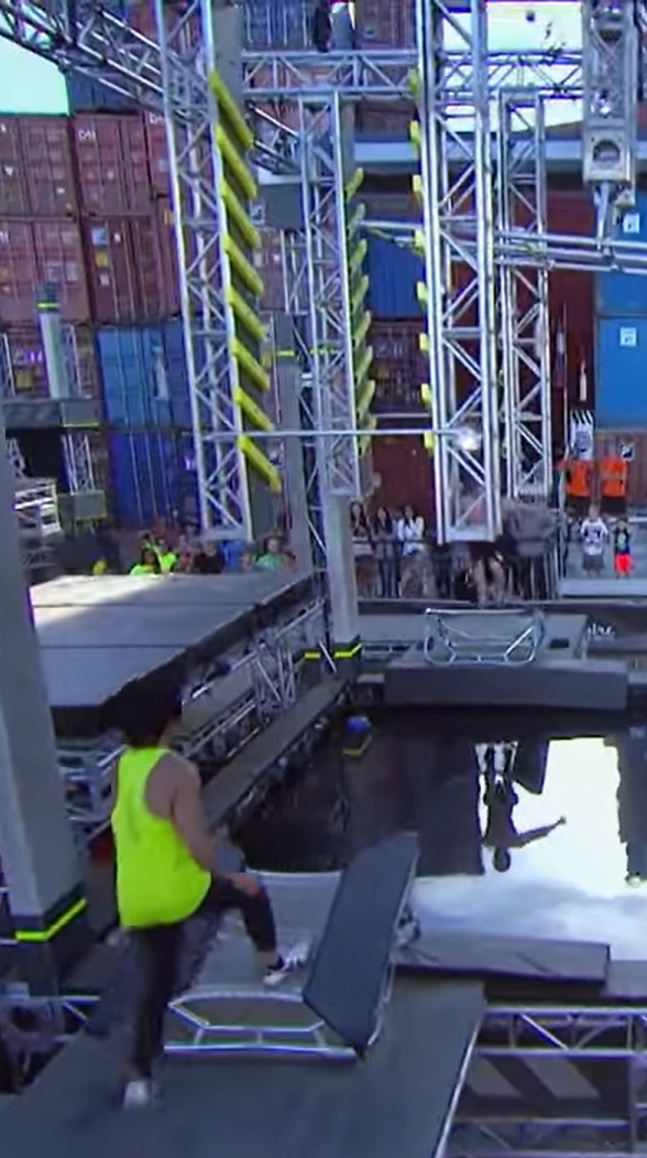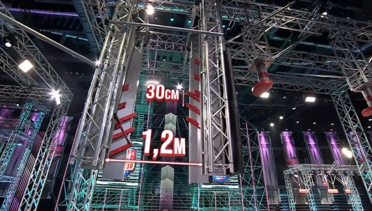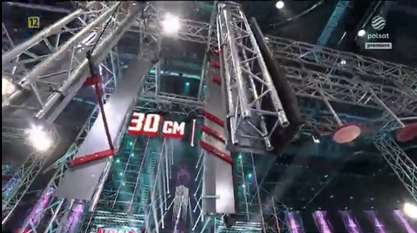 - The entire obstacle is suspended from the ceiling without bottom supports, causing it to shake with each jump. However, subsequent improvements addressed this issue by reinforcing the Salmon Ladder's walls, making them more rigid and thinner, and by adding additional supports.