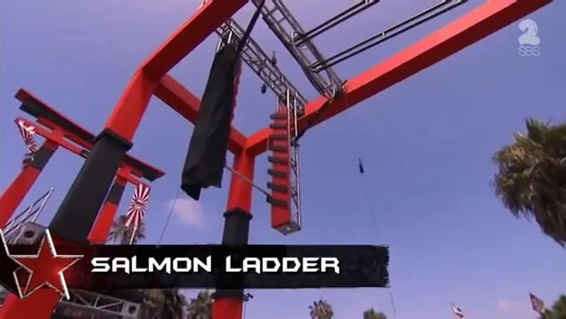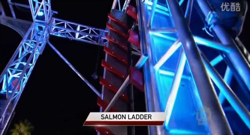 Salmon Ladder (サーモンラダー) is a Second Stage obstacle that was introduced as part of the course's renewal in SASUKE 18 after Nagano Makoto's Kanzenseiha in the previous tournament. This obstacle required a tremendous amount of upper-body strength, as competitors must grab a bar rested on two parallel walls, then start traversing a set of rungs provided. To make it harder, the bar was also not bound to the wall in any way. It proved to be a massive energy drainer and even could claim victims on its own, earning its reputation as one of the deadliest obstacles ever in SASUKE. It even caused SASUKE 19 to end on the Second Stage, as both competitors that reached it in that tournament would fail there.
