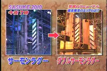 Comparison between the Salmon Ladder (left) and the Double Salmon Ladder (right), shown via the introduction of Stage 2 in SASUKE 25