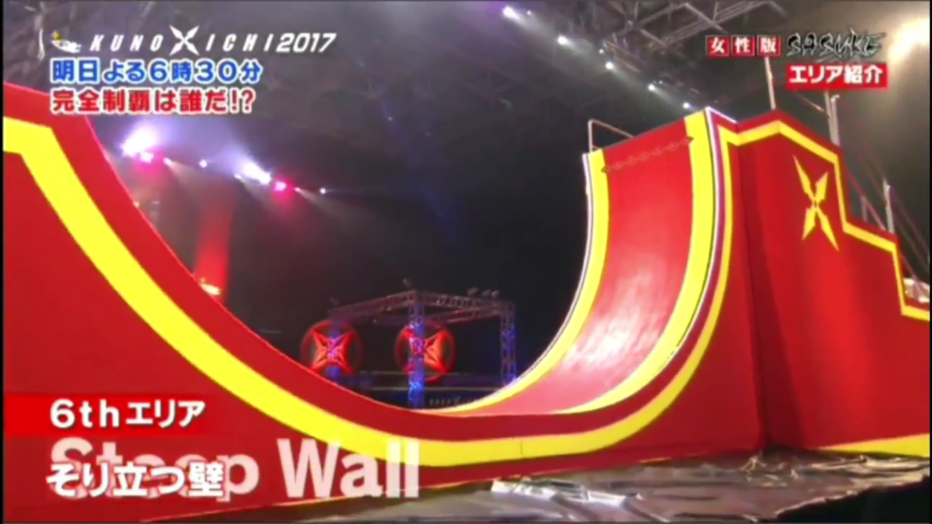 - A portion of the wall is removed to make it easier for woman competitors to climb atop with, similar to KUNOICHI version.