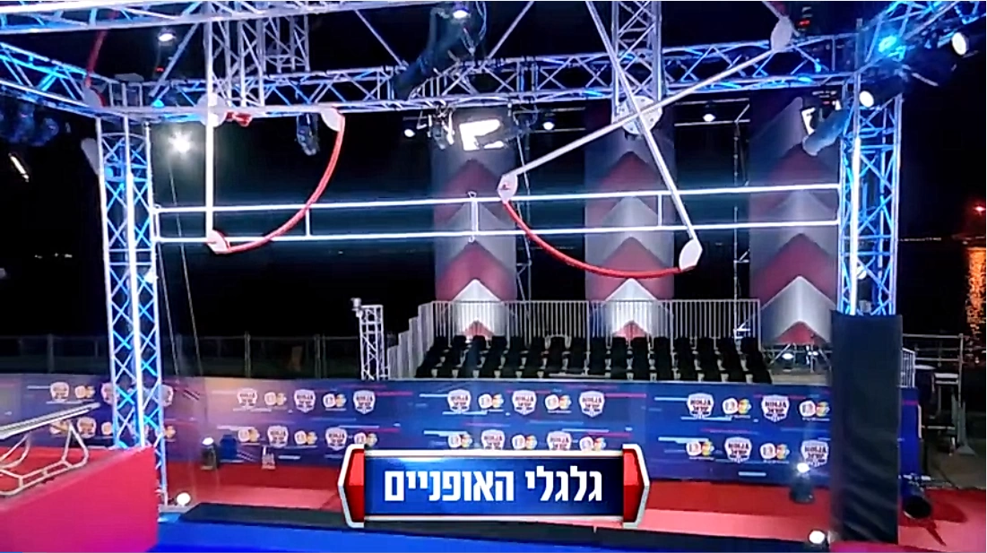 Later, on Ninja Warrior Israel 4, the Spinning Bowties appeared as the first obstacle in Semifinal 1, Semifinal 5 and Repechage Semifinal. This time, the obstacle was very similar to the one used in American Ninja Warrior 10 (except that the trampoline was removed).