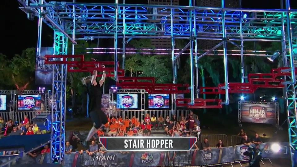 On American Ninja Warrior 10, the Stair Hopper appeared as the ninth obstacle during Miami finals, and the obstacle remained unchanged from the past two American Ninja Warrior seasons.