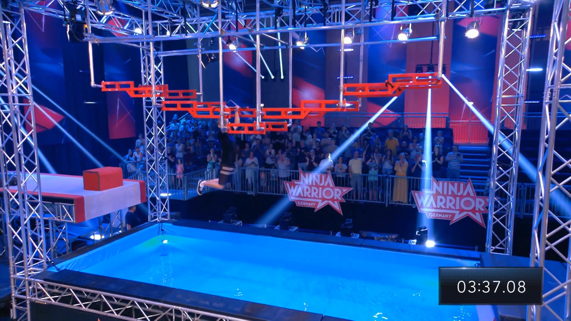 On Ninja Warrior Germany, the Stair Hopper (Stangen-Treppe, literally Bar Stairs) first appeared in the Semi-finals of Ninja Warrior Germany 4, serving as the eighth and penultimate obstacle of the Semi-finals of said season. The obstacle proved to be brutal, with only four competitors (Joel Mattli, Alexander Wurm, Benjamin Reichmann and Renรฉ Casselly) out of the 17 competitors completing this obstacle.