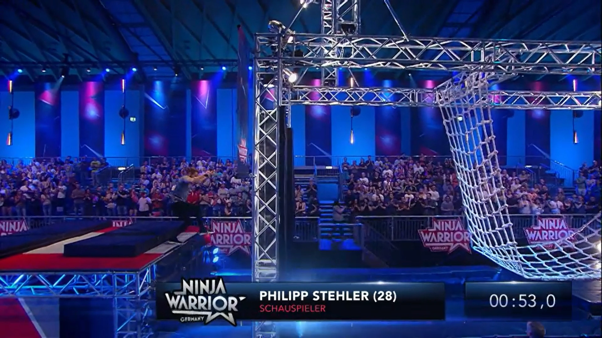 On Ninja Warrior Germany 1, Swing Jump appeared as the fourth obstacle of Preliminary Round 1.