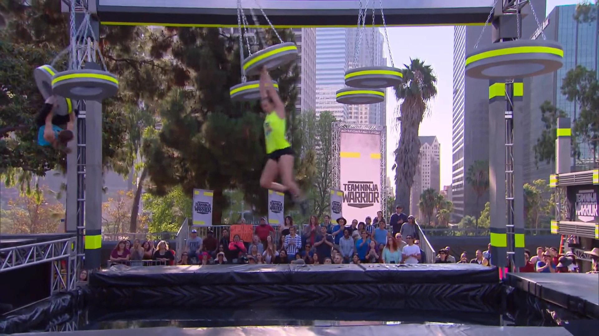 Later, the regular Tyre Swing appeared as the fifth obstacle in Semifinal 1. This version would later appear in Australian Ninja Warrior 2 as the fifth obstacle in Heat 5.