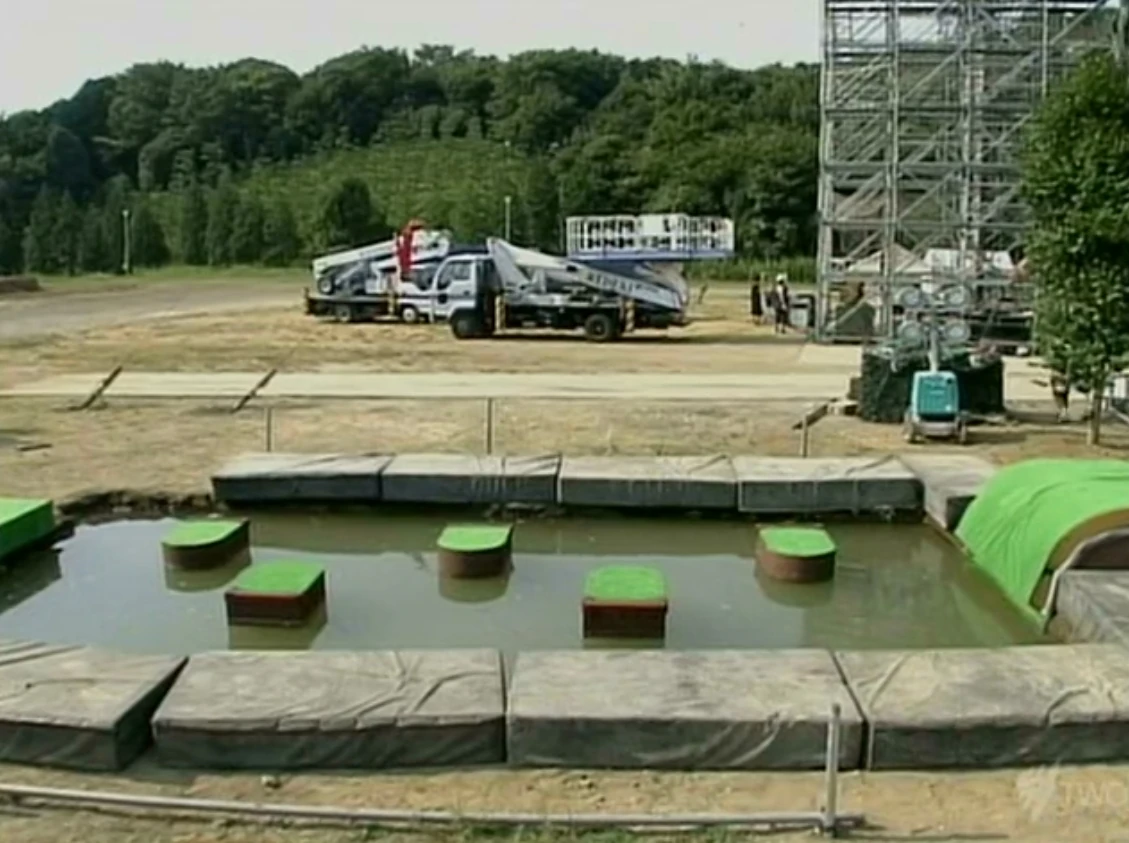 Tobii Sou (飛石走) was a First Stage obstacle in KUNOICHI 7, it replaced the Fuyuu Sou from KUNOICHI 6. The objective for this obstacle was to step across five pads, each in the shape of a lilypad, to reach the landing mats on the other side. This obstacle had a similar concept with SASUKE's Rokudantobi and American Ninja Warrior's Quintuple Steps. During it's inception it was considered to be a perfect first obstacle, being much easier than Buyoishi but more difficult than the Fuyuu Sou. It did good damage during it's first tournament, taking out about 15+ people. Despite it's amicable placement as the first obstacle, it only lasted one tournament due to the KUNOICHI 8 course re-design.