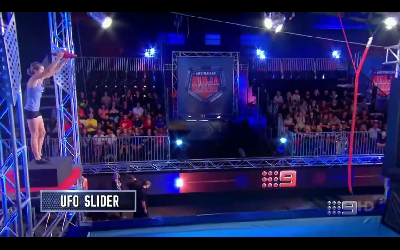 In essence, competitors must slide down a flying saucer-shaped disk (similar to the one used on the Area 51, which was used as the seventh obstacle in Stage Three on American Ninja Warrior 7), then time their release to grab a rope and reach the landing platform to advance.
