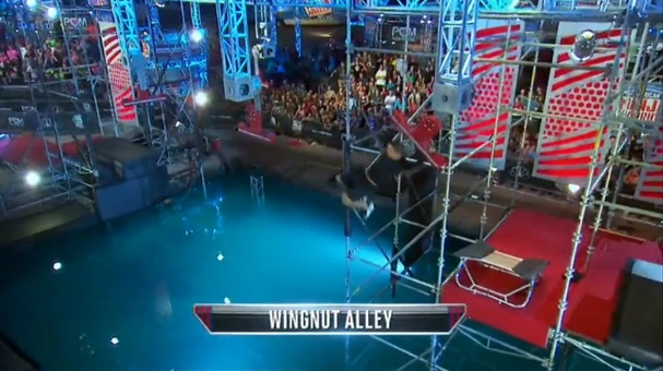 As if it wasn't difficult enough, during USA vs. The World 4, the Wingnut Alley was modified by reducing the number of wingnuts from four to three, making the gap between one wingnut to the other much larger. As a result, the obstacle took out Sean Bryan from Team USA, when he failed to generate enough swing and momentum to the landing platform, slammed his back to the side, and fell into the water.
