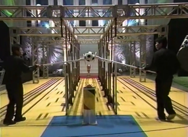 World Cup (ワールドカップ) was an obstacle that made up the Germany Stage (Final Stage) in both Viking Family Muscle tournaments. The obstacle required a pair of competitors to navigate a soccer ball pressed between two metal plates through a metal maze without dropping it.