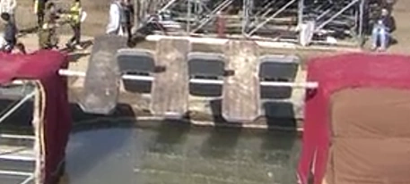 The obstacle seemed tricky at first, but As the day progressed, competitors began to clear the obstacle by taking two leaps straight down the middle. As a result, it only eliminated two competitors in its appearance and was indirectly replaced by Bridge Jump in the following tournament.